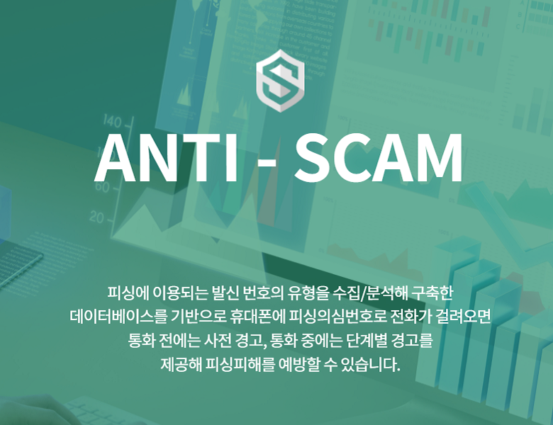 피싱에 이용되는 발신 번호의 유형을 수집/분석해 구축한 데이터베이스를 기반으로 휴대폰에 피싱의심번호로 전화가 걸려오면 통화 전에는 사전 경고, 통화 중에는 단계별 경고를 제공해 피싱 피해를 예방할 수 있습니다.상세안내 : https://www.antiscam.co.kr/